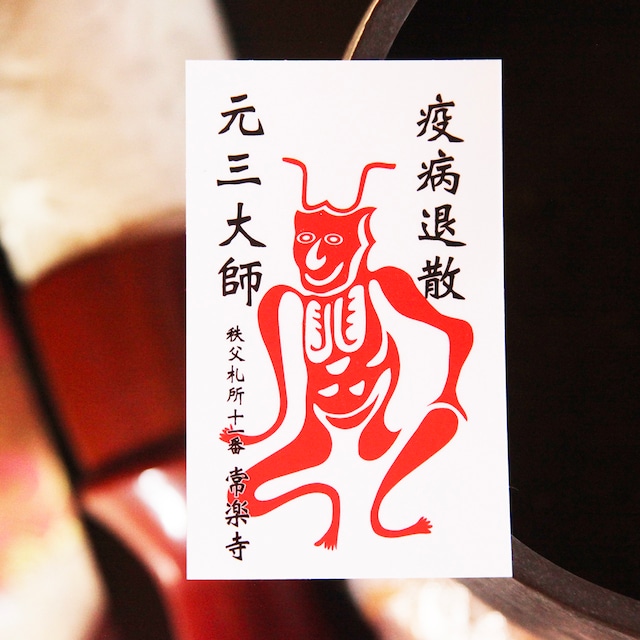 名刺サイズ(55mmX90mm) コロナ退散! 疫病退散、厄除けのお寺、秩父札所11番常楽寺でご祈願をしてからお届けしています。 疫病をはらう元三大師(角大師)の疫病退散ステッカーです。 元三大師が鬼の姿になって疫病神を追い払った時の姿が、この角大師です。 自動車やバイク、家の玄関に貼ったりしてコロナを追い払いましょう! ほかに大(ハガキサイズ)と、小・大セットがあります。