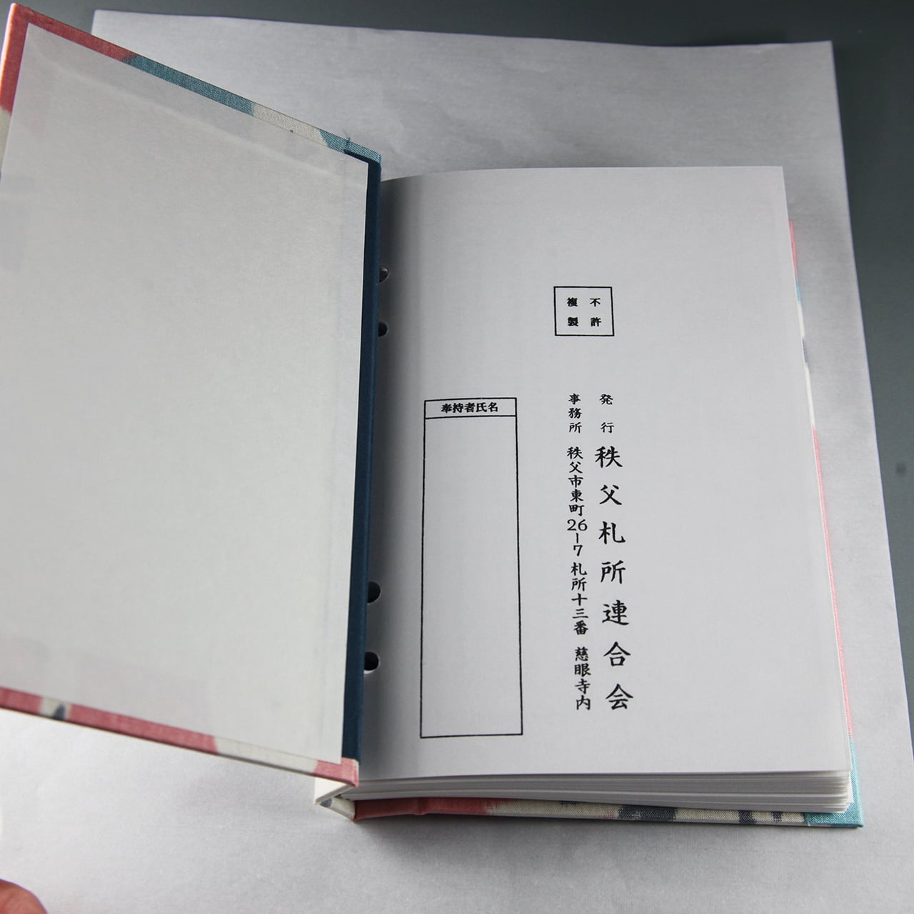 (注)4〜7枚目の写真は花柄の御朱印帳のものですが、これと同じです。